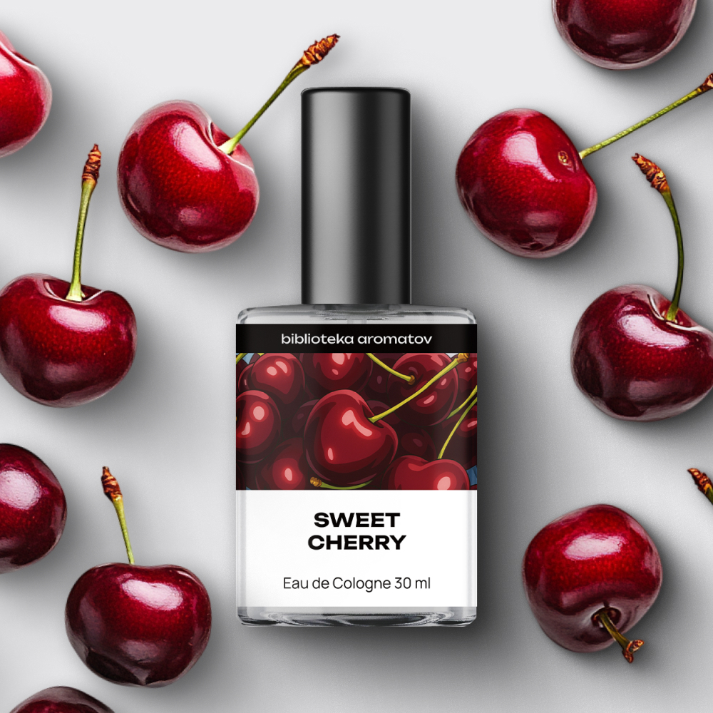 Аромат с яркой вспышкой спелой тёмной черешни – сочной, густой, почти пьянящей. В сердце – лёгкая горчинка косточки и вишнёвая терпкость, добавляющая глубину и характер. После пшика она будет пышно растекаться по вашей коже в любой сезон года.