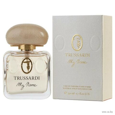 Trussardi My Name – новый аромат для женщин, вышедший в 2013 году. Парфюм принадлежит к семейству восточных цветочных. Тонкий и изысканный, этот запах освежает и открывает чувства. Парфюм посвящен городу Милану и отражает атмосферу роскоши и стиля, царящую в нем. Открывается My Name от Trussardi аккордами гелиотропа и белой фиалки. В сердце угадываются мотивы мускуса, пронизанные весенними нотками сирени. В завершении звучит обволакивающая ванильно-амбровая база.