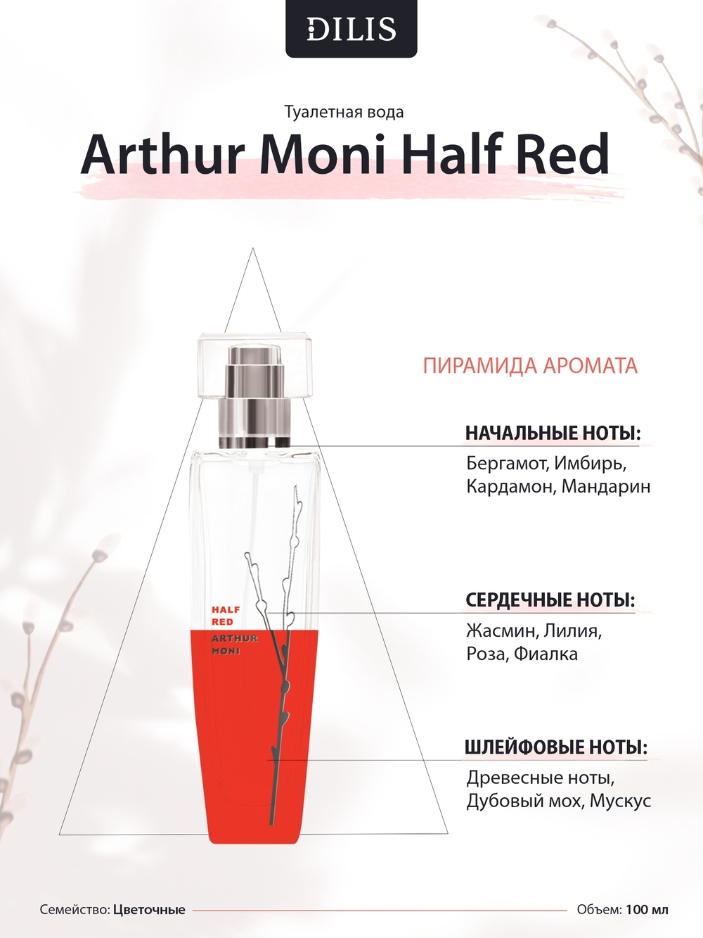 "Arthur Moni Half Red" как современное искусство: не всегда до конца понятен, но определённо завораживает. Какого он цвета? Конечно, наполовину красный. А что мы знаем про форму? Это чёткий прямоугольник. Это аромат-восхищение женщиной! Поклонница "Arthur Moni Half Red" абсолютно точно знает, чего хочет, в ней сочетается острый ум, властная натура и всепоглощающая харизма. Выверенное сочетание формы и текстуры влюбляет в себя незаметно и навсегда.