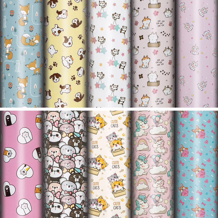 Изготовлена из мелованной бумаги и представлена в 10 универсальных дизайнах с детским принтом.