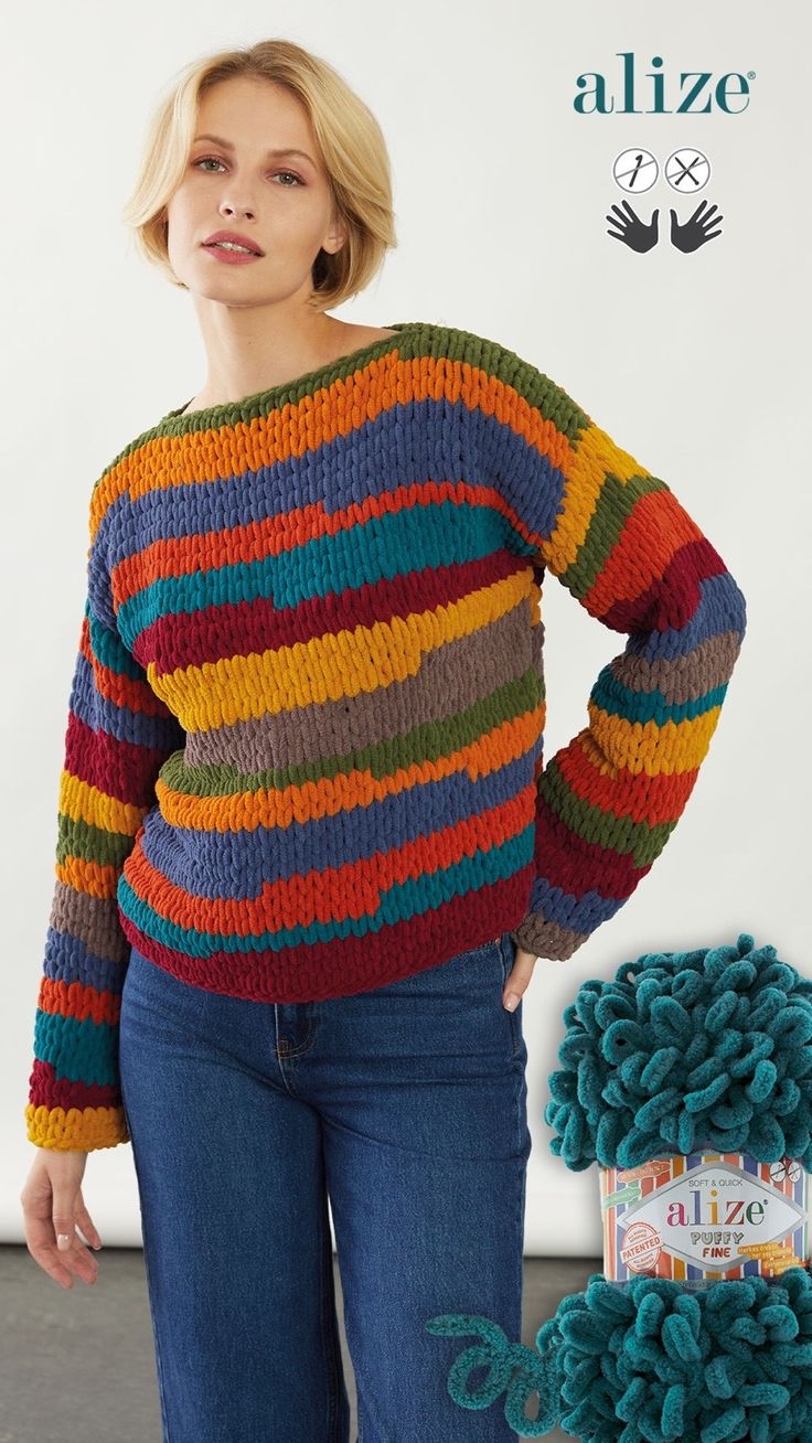Плюшевая пряжа "Puffy Fine" от Alize представлена в яркой цветовой палитре вещи из этой пряжи получаются мягкими и уютными, комфортны при соприкосновении с кожей.