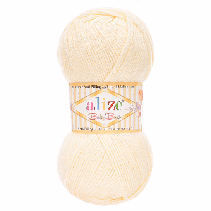 Пряжа "Baby Best" Alize представляет собой превосходный выбор для детского вязания. Она приятна на ощупь и изготовлена из акрила в сочетании с натуральным бамбуковым волокном. Нить аккуратно скручена и однородна, без повреждений и узелков на протяжении всей длины.