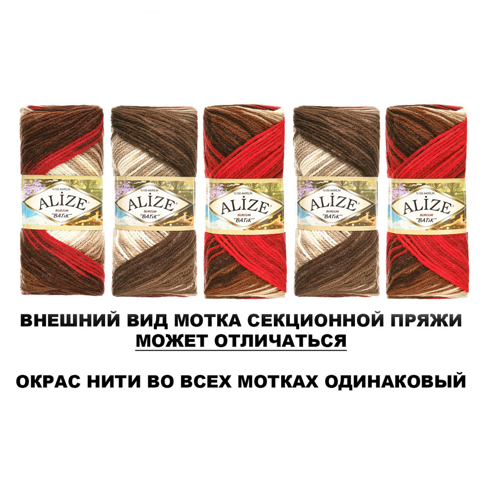 Пряжа "Burcum Batik", произведенная компанией Alize, изготавливается на 100% из акрила. Она обладает мягкой текстурой и приятна на ощупь, не вызывая аллергических реакций.