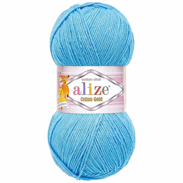 Нить классической крутки, достаточно тонкая. Пряжа "Cotton Gold" состоит из мягких гипоаллергенных материалов, вещи из нее не раздражают нежную детскую кожу, не перегревают и хорошо сохраняют тепло.