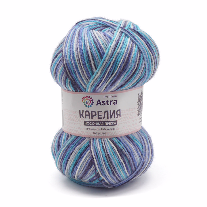 Пряжа "Карелия" от Astra Premium – прекрасный выбор для вязания носков. Сочетание шерсти и нейлона – традиционное для носочной пряжи. В составе 25% нейлона, поэтому носки из этой пряжи практичны, выдерживают частые стирки и прослужат вам не один сезон. Благодаря большому содержанию шерсти вещи из "Карелии" отлично согревают в холодную погоду. Нить тонкая, поэтому носки получаются не слишком объемными, их можно носить с разной обувью.