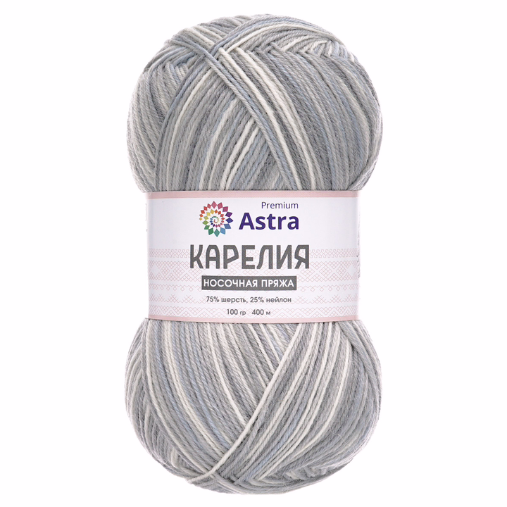 Пряжа "Карелия" от Astra Premium – прекрасный выбор для вязания носков. Сочетание шерсти и нейлона – традиционное для носочной пряжи. В составе 25% нейлона, поэтому носки из этой пряжи практичны, выдерживают частые стирки и прослужат вам не один сезон. Благодаря большому содержанию шерсти вещи из "Карелии" отлично согревают в холодную погоду. Нить тонкая, поэтому носки получаются не слишком объемными, их можно носить с разной обувью.