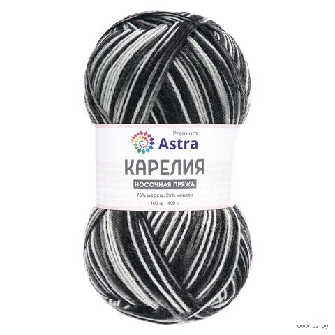Пряжа "Карелия" от Astra Premium – прекрасный выбор для вязания носков. Сочетание шерсти и нейлона – традиционное для носочной пряжи. В составе 25% нейлона, поэтому носки из этой пряжи практичны, выдерживают частые стирки и прослужат вам не один сезон. Благодаря большому содержанию шерсти вещи из "Карелии" отлично согревают в холодную погоду. Нить тонкая, поэтому носки получаются не слишком объемными, их можно носить с разной обувью.