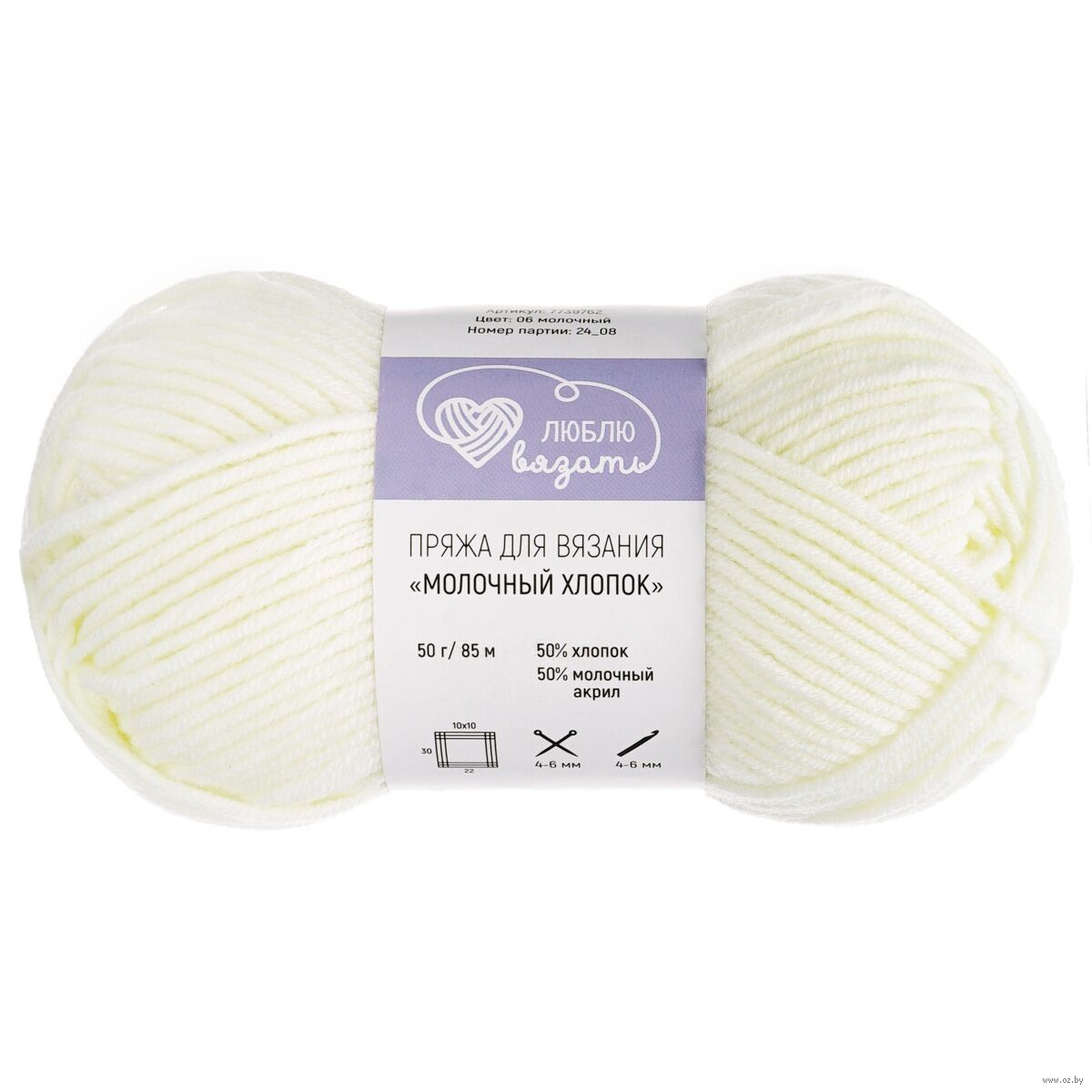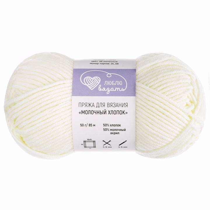 Молочный хлопок "Milk Cotton" – мягкая всесезонная пряжа от бренда Люблю вязать с уникальным комбинированным составом. На 50% она состоит из молочного акрила – этот материал получают из продуктов молочного производства, обрабатывают и вытягивают в нити. Получается легкое объемное волокно. Универсальная средняя толщина пряжи подходит для любого изделия: шапки, снуда, шарфа, кардигана и жакета, пуловера, носков, рукавиц. Пряжа подходит для вязания изделий для взрослых, безопасная для детей.