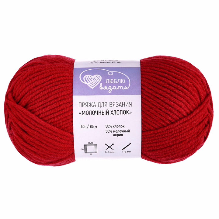 Молочный хлопок "Milk Cotton" – мягкая всесезонная пряжа от бренда Люблю вязать с уникальным комбинированным составом. На 50% она состоит из молочного акрила – этот материал получают из продуктов молочного производства, обрабатывают и вытягивают в нити. Получается легкое объемное волокно. Универсальная средняя толщина пряжи подходит для любого изделия: шапки, снуда, шарфа, кардигана и жакета, пуловера, носков, рукавиц. Пряжа подходит для вязания изделий для взрослых, безопасная для детей.