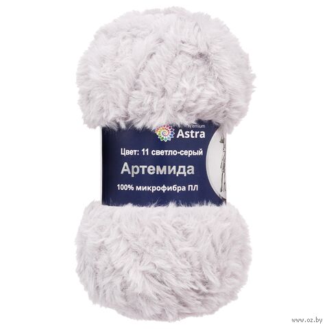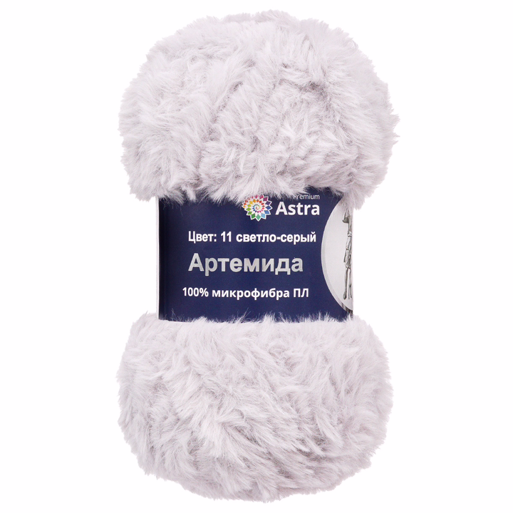 "Артемида" от Astra Premium – толстая меховая пряжа с густым, легким и тонким ворсом из 100% микрофибры. Нить толстая, поэтому вяжется быстро, а неудачные петли можно легко распустить, подходит даже для новичков. Всего за час вы свяжите шарф или шапку.