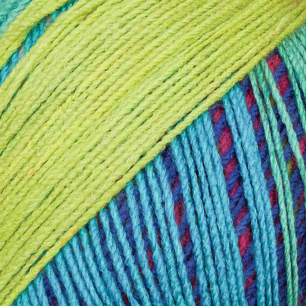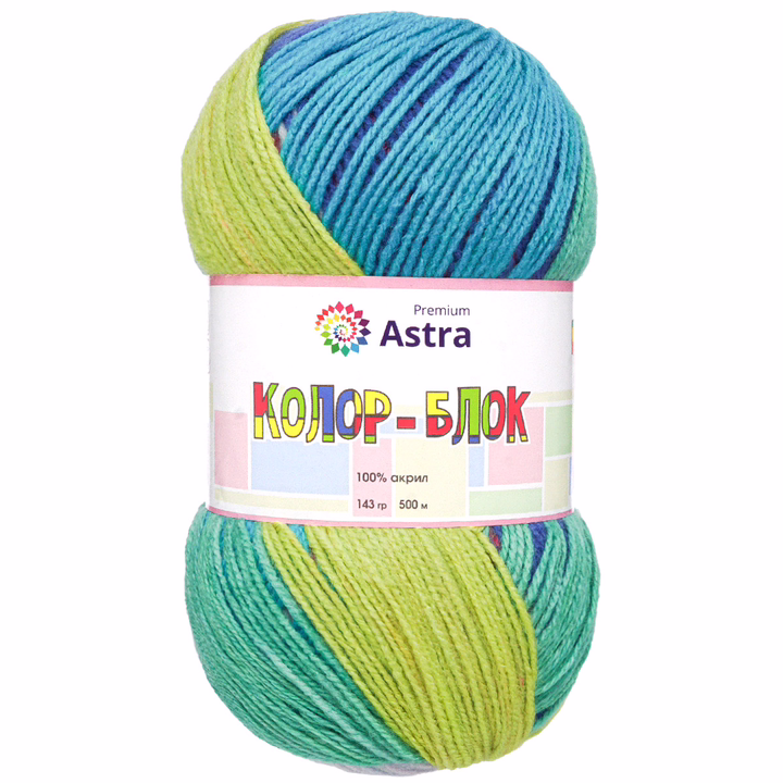 Пряжа от Astra Premium с длинными секциями позволяет создавать вещи в стиле "Колор-блок" (Color-block). Особые навыки при этом не нужны, подбирать цвета и каждый раз ввязывать новую нить не требуется. Работайте в простой технике "лицевая гладь", и у вас получится модное многоцветное полотно! Моток немного больше стандартного, поэтому его хватит на небольшое изделие – шарф, шапку, носки.