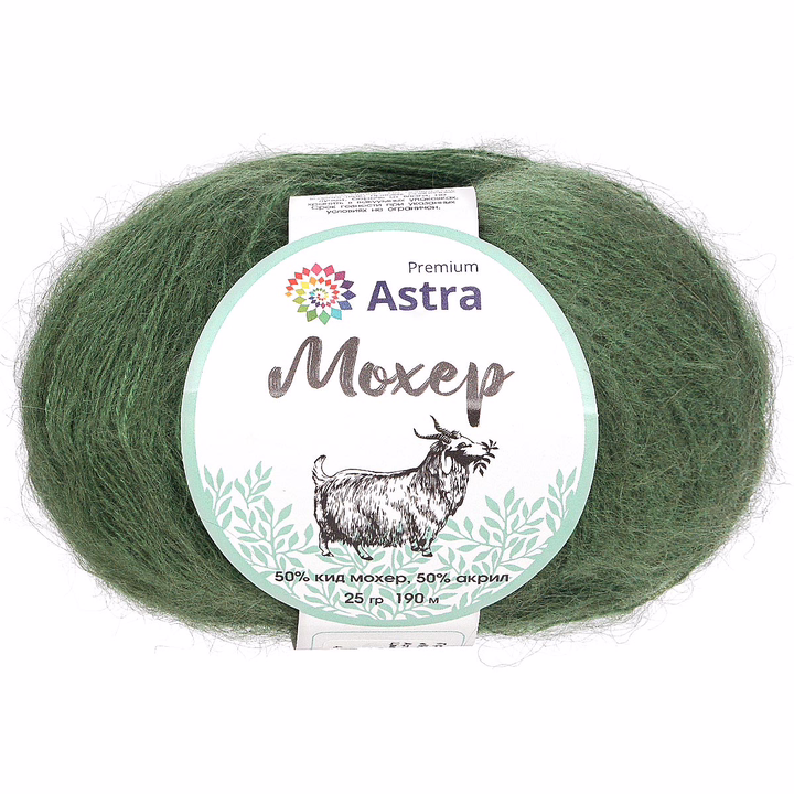 "Мохер" (Mohair) – полушерстяная пряжа от Astra Premium с выраженным ворсом. В составе пряжи – шерсть кид мохер родом из Южной Африки. Волокно кид мохер получают при стрижке полугодовалых козлят ангорской породы. Такая шерсть особенно тонкая, мягкая и отлично согревает.