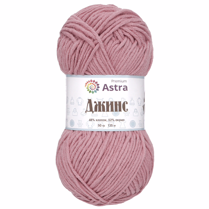 "Джинс" от Astra Premium – удачный выбор для создания практичных вещей в повседневном стиле. Пряжа универсальная, подходит для вязания шапочек, носков, свитеров, мягких игрушек. Продается небольшими мотками по 50 г. Чтобы связать свитер для взрослого, понадобится около 450 г пряжи, или 9 мотков.