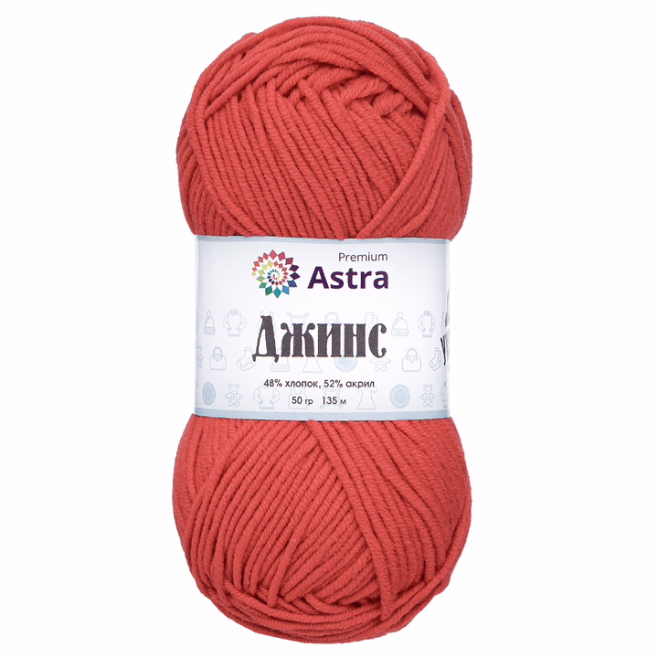 "Джинс" от Astra Premium – удачный выбор для создания практичных вещей в повседневном стиле. Пряжа универсальная, подходит для вязания шапочек, носков, свитеров, мягких игрушек. Продается небольшими мотками по 50 г. Чтобы связать свитер для взрослого, понадобится около 450 г пряжи, или 9 мотков.