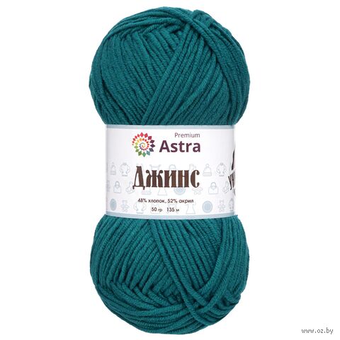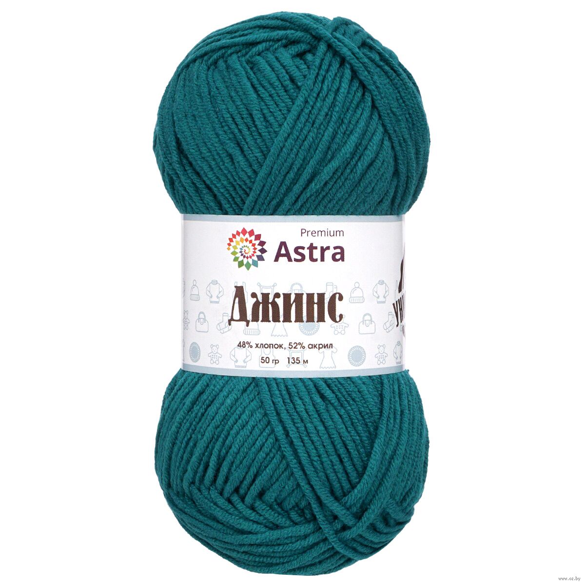 "Джинс" от Astra Premium – удачный выбор для создания практичных вещей в повседневном стиле. Пряжа универсальная, подходит для вязания шапочек, носков, свитеров, мягких игрушек. Продается небольшими мотками по 50 г. Чтобы связать свитер для взрослого, понадобится около 450 г пряжи, или 9 мотков.