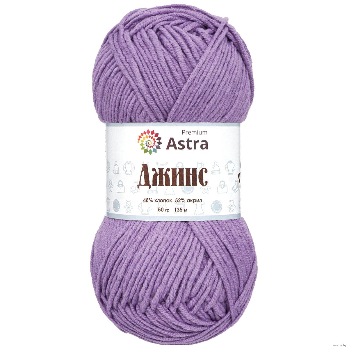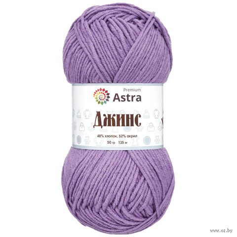 "Джинс" от Astra Premium – удачный выбор для создания практичных вещей в повседневном стиле. Пряжа универсальная, подходит для вязания шапочек, носков, свитеров, мягких игрушек. Продается небольшими мотками по 50 г. Чтобы связать свитер для взрослого, понадобится около 450 г пряжи, или 9 мотков.