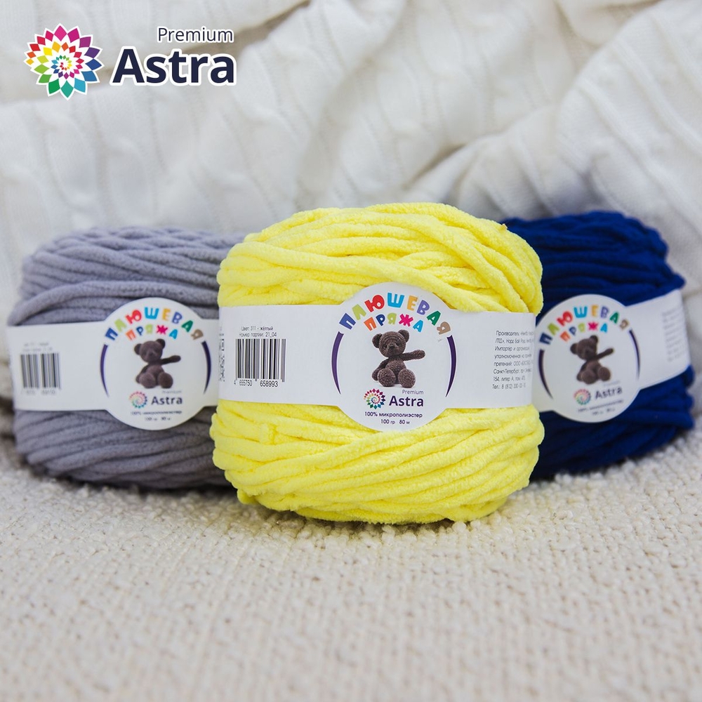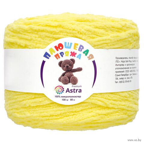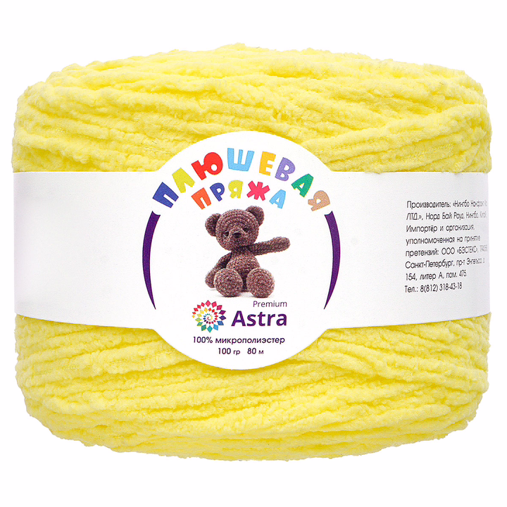 "Плюшевая" от Astra Premium – пряжа тончайшим пушистым ворсом, который придает вещам мягкость и объем. Нить изготовлена 100% микрополиэстера, этот материал не раздражает кожу, сохраняет форму и цвет длительное время.
