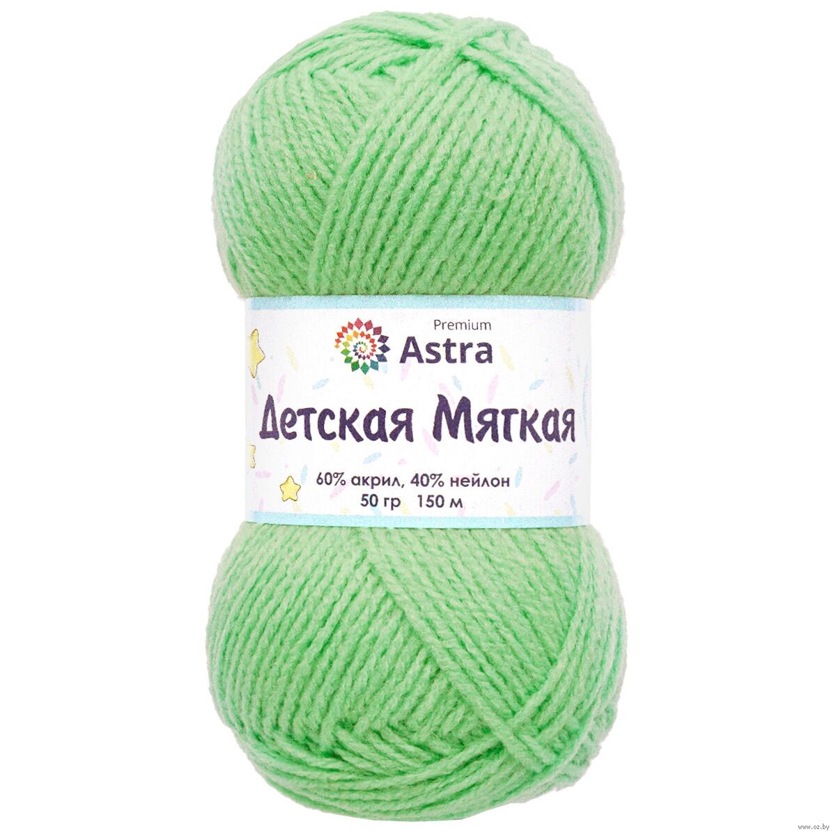 Пряжа Astra Premium "Детская мягкая" имеет приятную на ощупь и деликатную фактуру благодаря слабо выраженной крутке и особенностям материалов. Акрил и нейлон отличаются мягкостью, не вызывают аллергии и безопасны для нежной детской кожи. Нить с небольшим пушком, стабильная и пластичная. Вязаное полотно получается в меру тонким и немного рельефным. Готовые вещи выглядят нарядно благодаря продуманной цветовой палитре.