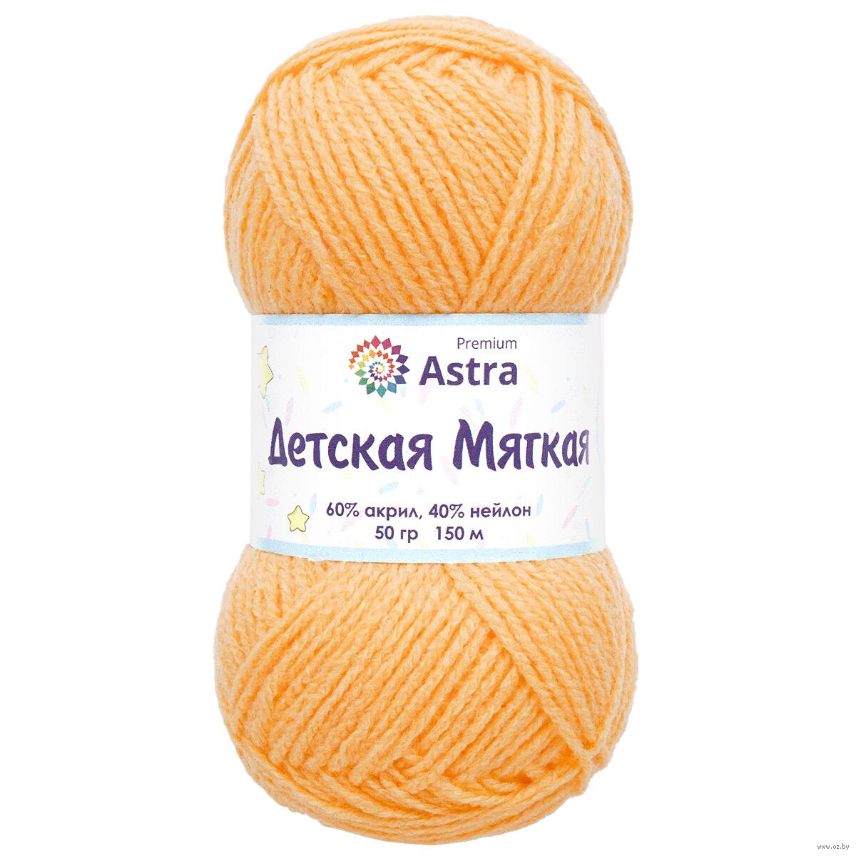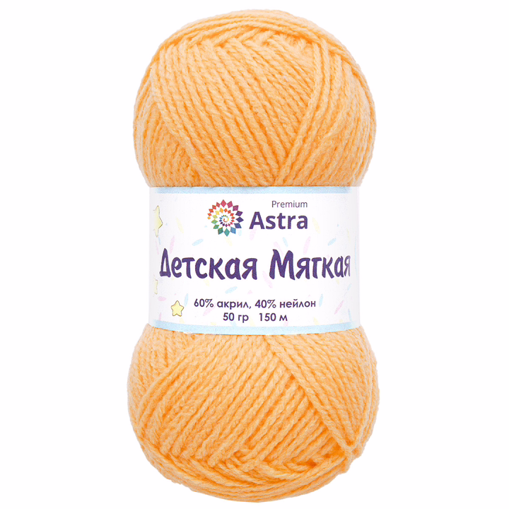 Пряжа Astra Premium "Детская мягкая" имеет приятную на ощупь и деликатную фактуру благодаря слабо выраженной крутке и особенностям материалов. Акрил и нейлон отличаются мягкостью, не вызывают аллергии и безопасны для нежной детской кожи. Нить с небольшим пушком, стабильная и пластичная. Вязаное полотно получается в меру тонким и немного рельефным. Готовые вещи выглядят нарядно благодаря продуманной цветовой палитре.