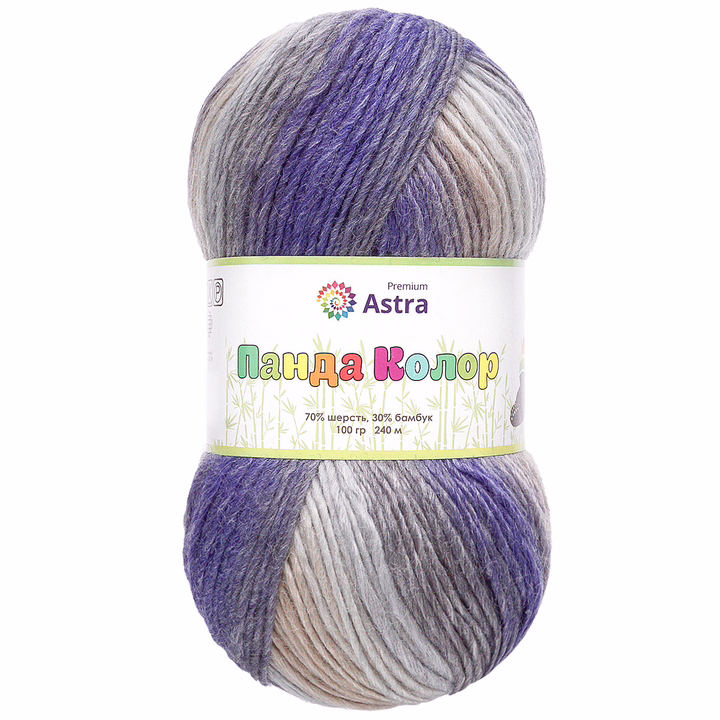 "Панда Колор" (Panda Color) от Astra Premium – пряжа из шерсти и бамбука, полностью натуральных волокон. Бамбуковое волокно ценят за его мягкость, способность впитывать влагу, этот материал позволяет коже дышать. Благодаря большому содержанию шерсти изделия из этой пряжи отлично согревают и подходят для холодной погоды. Свяжите из этой пряжи комплект "шапочка и шарф", согревающую жилетку, объемный свитер.