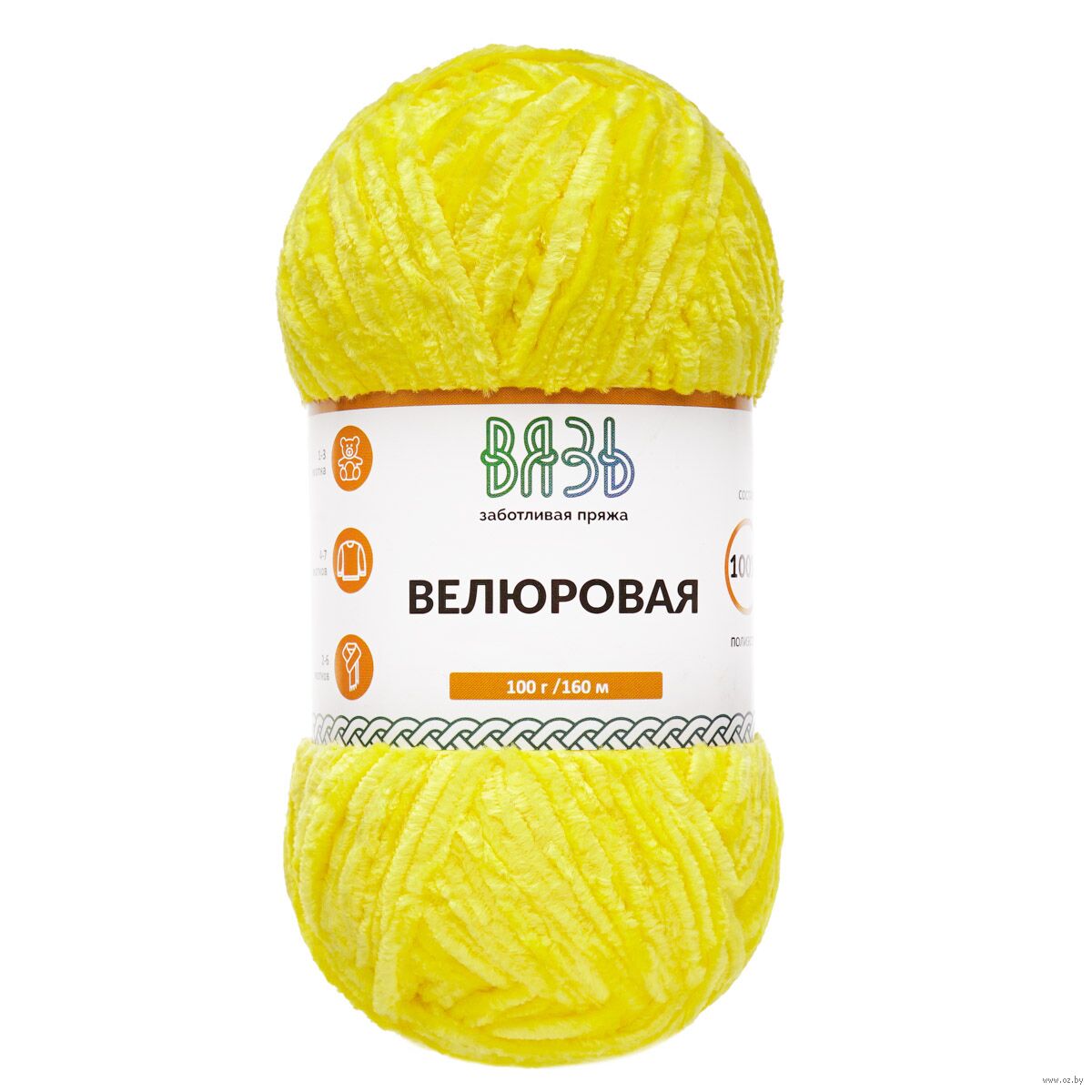 Особенность "Велюровой" пряжи от бренда "Вязь" – тонкий, гладкий и бархатистый на ощупь ворс из 100% полиэстера. Вещи из этой пряжи получаются мягкими и уютными, очень приятными для кожи. При этом они легкие, не скатываются, сохраняют форму после стирки, а ворс не выпадает. "Велюровая" пряжа не раздражает кожу, поэтому подойдет даже для детских вещей, пледов, ковриков, наволочек или мягких игрушек.