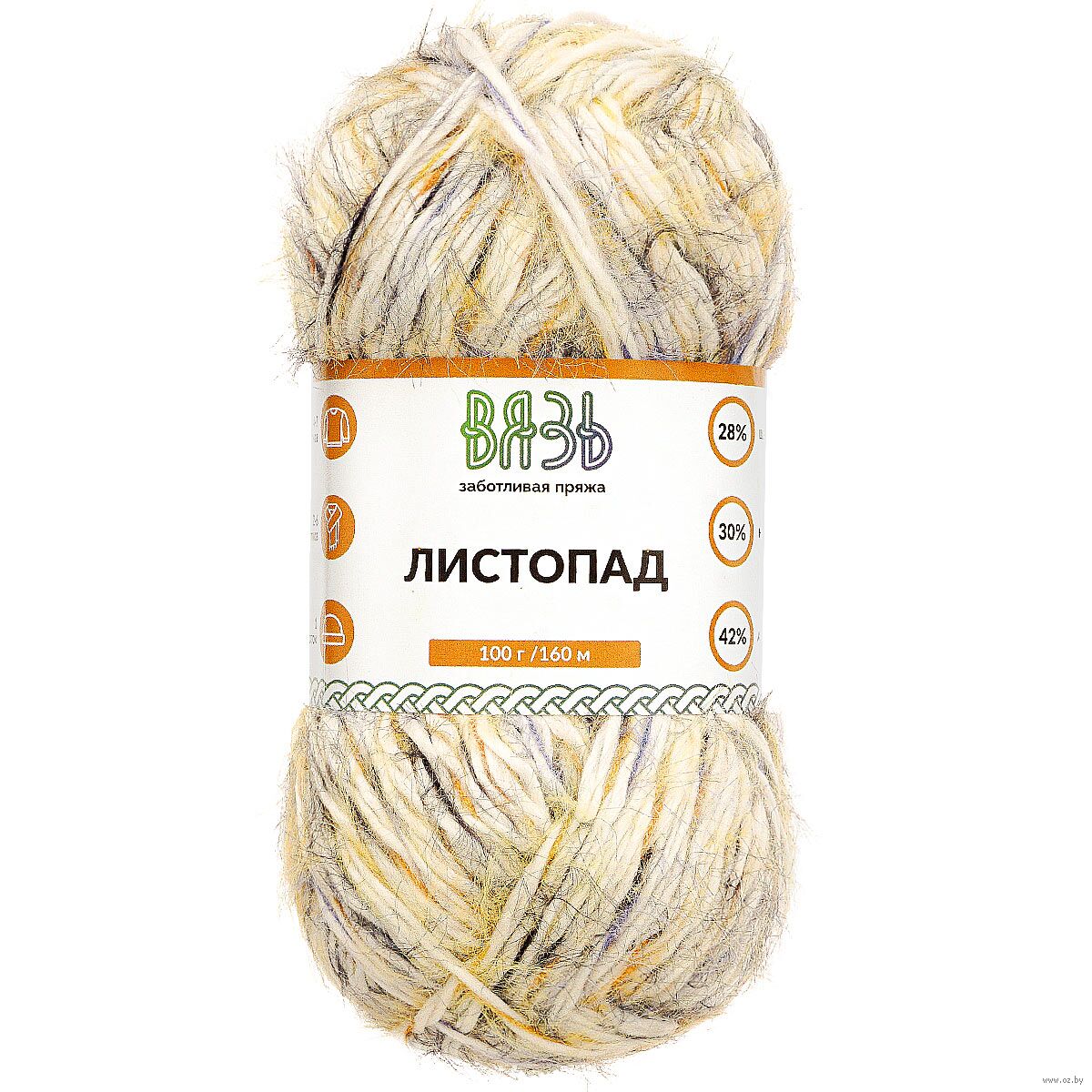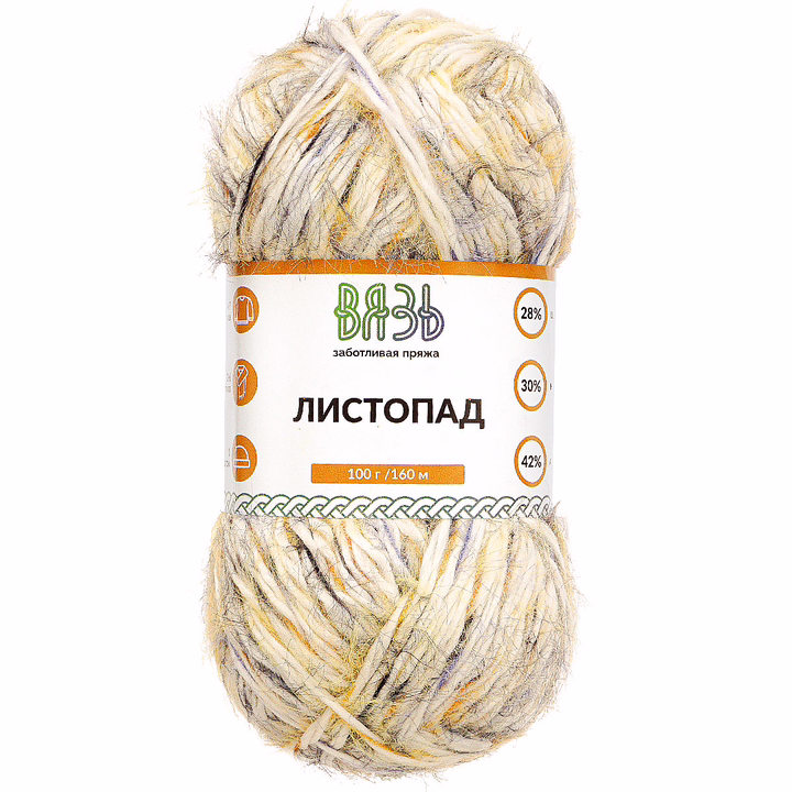 "Листопад" – фантазийная новинка от бренда "Вязь", выбор для тех, кто ценит атмосферу покоя, уютные свитера и долгие прогулки по осеннему парку. "Листопад" представляет мягкое волокно слабо выраженной крутки с длинным редким ворсом. Нить окрашена по секционной технологии, что позволяет вязать причудливые орнаменты даже в простой технике "лицевая гладь". В ассортименте 6 пестрых расцветок, которые напоминают осенние пейзажи.