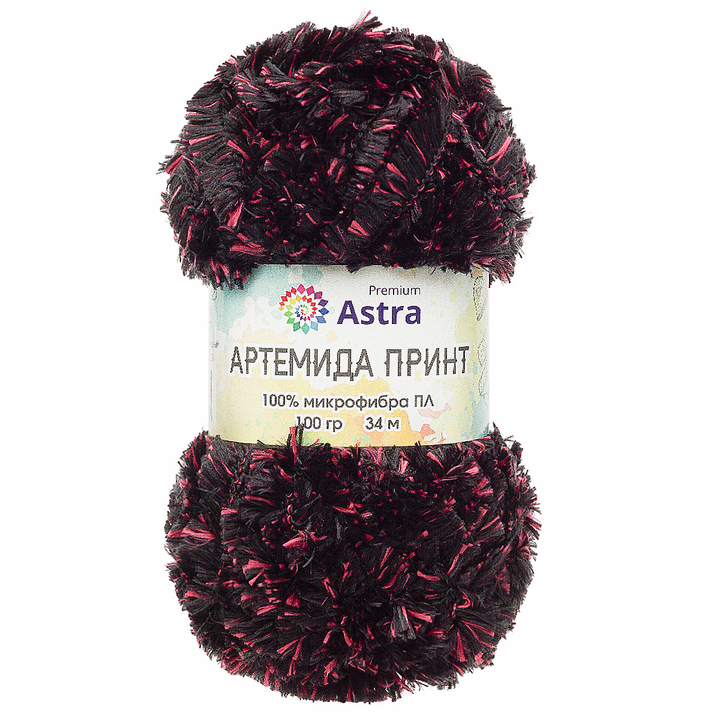 "Артемида Принт" от Astra Premium создана из 100% микрофибры – мягкого и качественного волокна. Ее изюминка – густой, тонкий и объемный ворс, а также необычный точечный прокрас. Изделия из этой пряжи как будто сшиты из меха, при этом они очень легкие, совершенно не колятся и комфортны даже для чувствительной кожи.