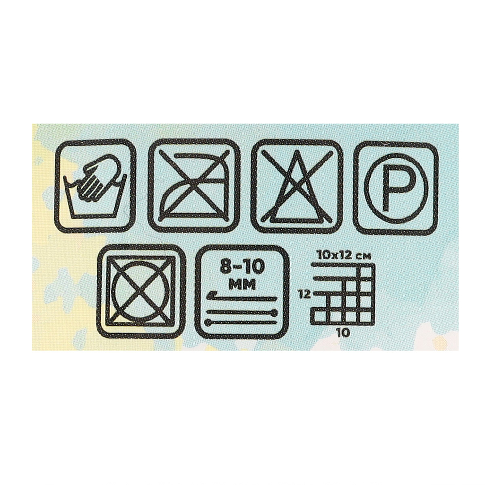 Рекомендации по уходу: ручная стирка без отбеливателя; допускается профессиональная чистка; не отжимать в стиральной машине; гладить запрещено.