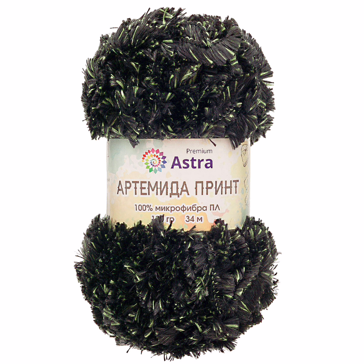 "Артемида Принт" от Astra Premium создана из 100% микрофибры – мягкого и качественного волокна. Ее изюминка – густой, тонкий и объемный ворс, а также необычный точечный прокрас. Изделия из этой пряжи как будто сшиты из меха, при этом они очень легкие, совершенно не колятся и комфортны даже для чувствительной кожи.