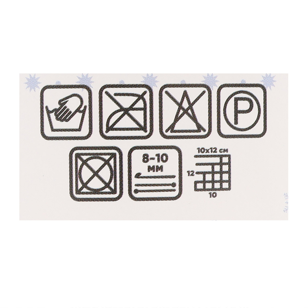 Рекомендации по уходу: ручная стирка без отбеливателя; допускается профессиональная чистка; не отжимать в стиральной машине; гладить запрещено.