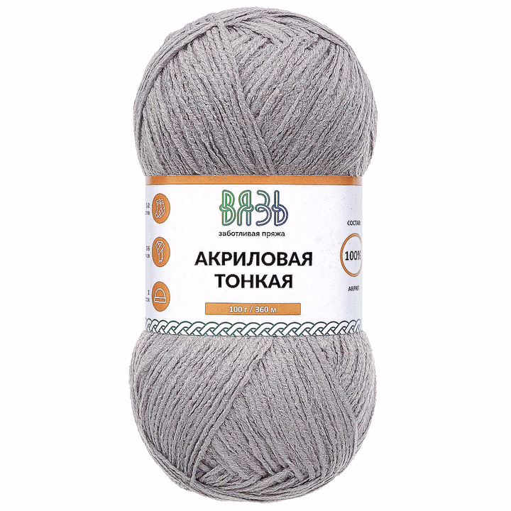 Акриловая тонкая от торговой марки "Вязь" – пряжа для создания любых изделий от игрушек до детских вещей. Плоское плетение нити придает пряже повышенную стойкость к трению. Благодаря плетеной структуре нити можно изготавливать изделия с объемной фактурой.