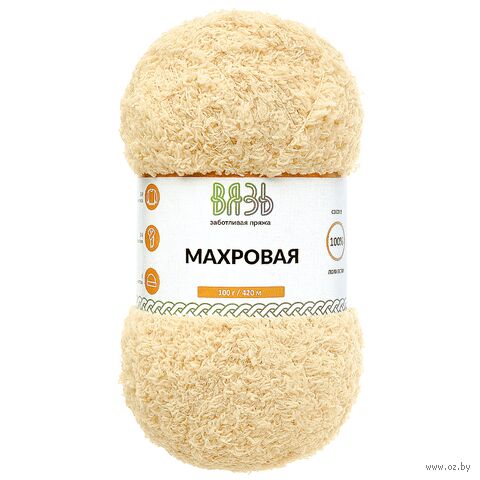 Махровая пряжа о торговой марки "Вязь" – мягкая, как мех, но при этом очень легкая и прочная. Полиэстер, из которого изготовлена пряжа, безопасен для чувствительной кожи, поэтому годится для детских пледов и игрушек. Вещи из Махровой пряжи получаются уютными и пышными. Махровый ворс образует воздушный слой, который хорошо удерживает тепло. За изделями из этой пряжи легко ухаживать – они сохраняют первоначальную форму, ворс не скатывается и не выпадает.