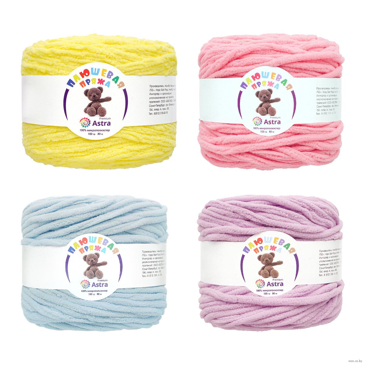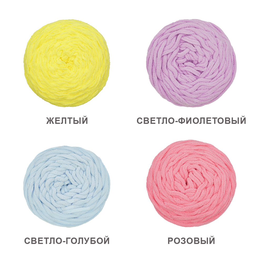 Нить плюшевой пряжи изготавливается из 100% микрополиэстера – материала, который не раздражает кожу и обладает рядом преимуществ. Микрополиэстер известен своей прочностью, устойчивостью к деформации и выцветанию. Благодаря этому изделия из Плюшевой пряжи сохраняют свою форму и яркость цвета на протяжении длительного времени, даже после многочисленных стирок.