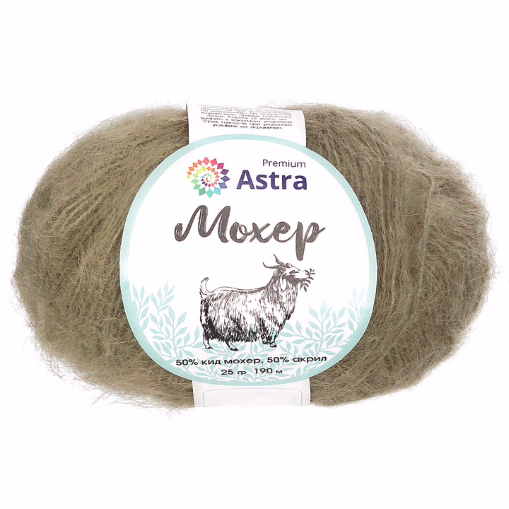 "Мохер" (Mohair) – полушерстяная пряжа от Astra Premium с выраженным ворсом. В составе пряжи – шерсть кид мохер родом из Южной Африки. Волокно кид мохер получают при стрижке полугодовалых козлят ангорской породы. Такая шерсть особенно тонкая, мягкая и отлично согревает.