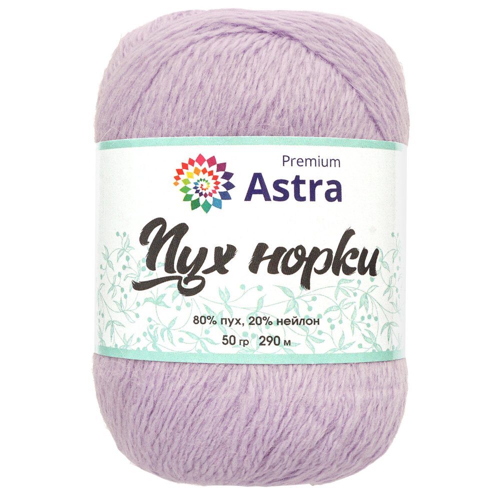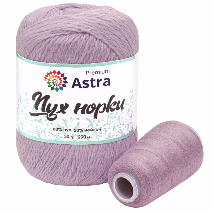 "Пух норки" (Mink yarn) от Astra Premium – пряжа для воздушных и согревающих вещей с выраженным ворсом. В процессе вязания нить не пушится, не спутывается, с ней удобно работать. Однако после влажной тепловой обработки ворс раскроется, изделие станет мягким и воздушным. Чтобы ворс лучше раскрылся, рекомендуем выбирать неплотную вязку. Чтобы вещи лучше сохраняли форму при ношении и после стирки, добавьте стабилизирующую нить из нейлона – она входит в комплект и совпадает с пряжей по цвету.