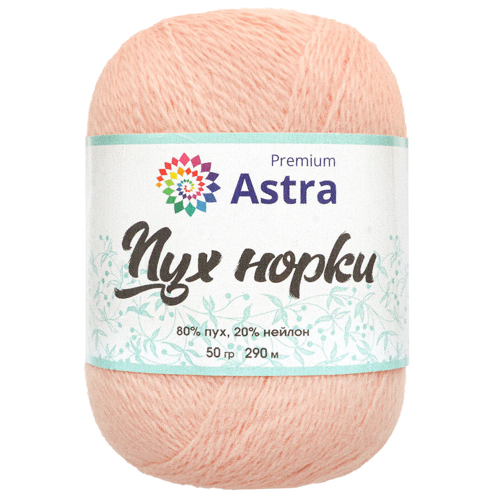"Пух норки" (Mink yarn) от Astra Premium – пряжа для воздушных и согревающих вещей с выраженным ворсом. В процессе вязания нить не пушится, не спутывается, с ней удобно работать. Однако после влажной тепловой обработки ворс раскроется, изделие станет мягким и воздушным. Чтобы ворс лучше раскрылся, рекомендуем выбирать неплотную вязку. Чтобы вещи лучше сохраняли форму при ношении и после стирки, добавьте стабилизирующую нить из нейлона – она входит в комплект и совпадает с пряжей по цвету.