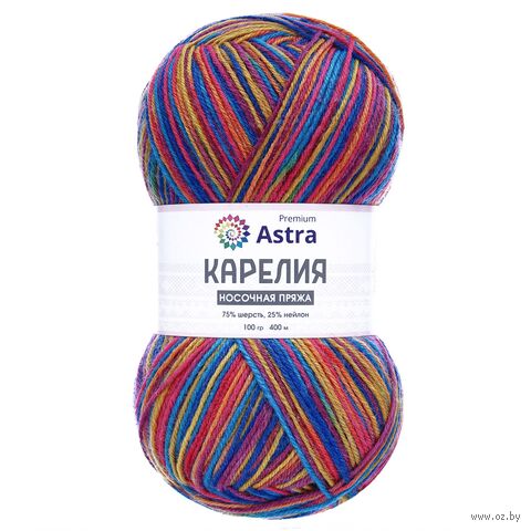 Пряжа "Карелия" от Astra Premium – прекрасный выбор для вязания носков. Сочетание шерсти и нейлона – традиционное для носочной пряжи. В составе 25% нейлона, поэтому носки из этой пряжи практичны, выдерживают частые стирки и прослужат вам не один сезон. Благодаря большому содержанию шерсти вещи из 'Карелии' отлично согревают в холодную погоду. Нить тонкая, поэтому носки получаются не слишком объемными, их можно носить с разной обувью.