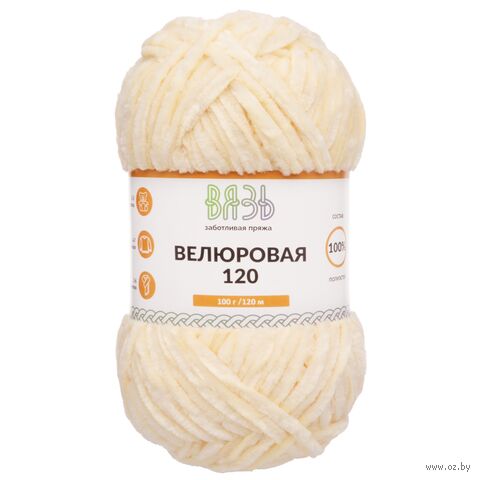 Пряжа "Велюровая №03" (100 г; 120 м; молочный)